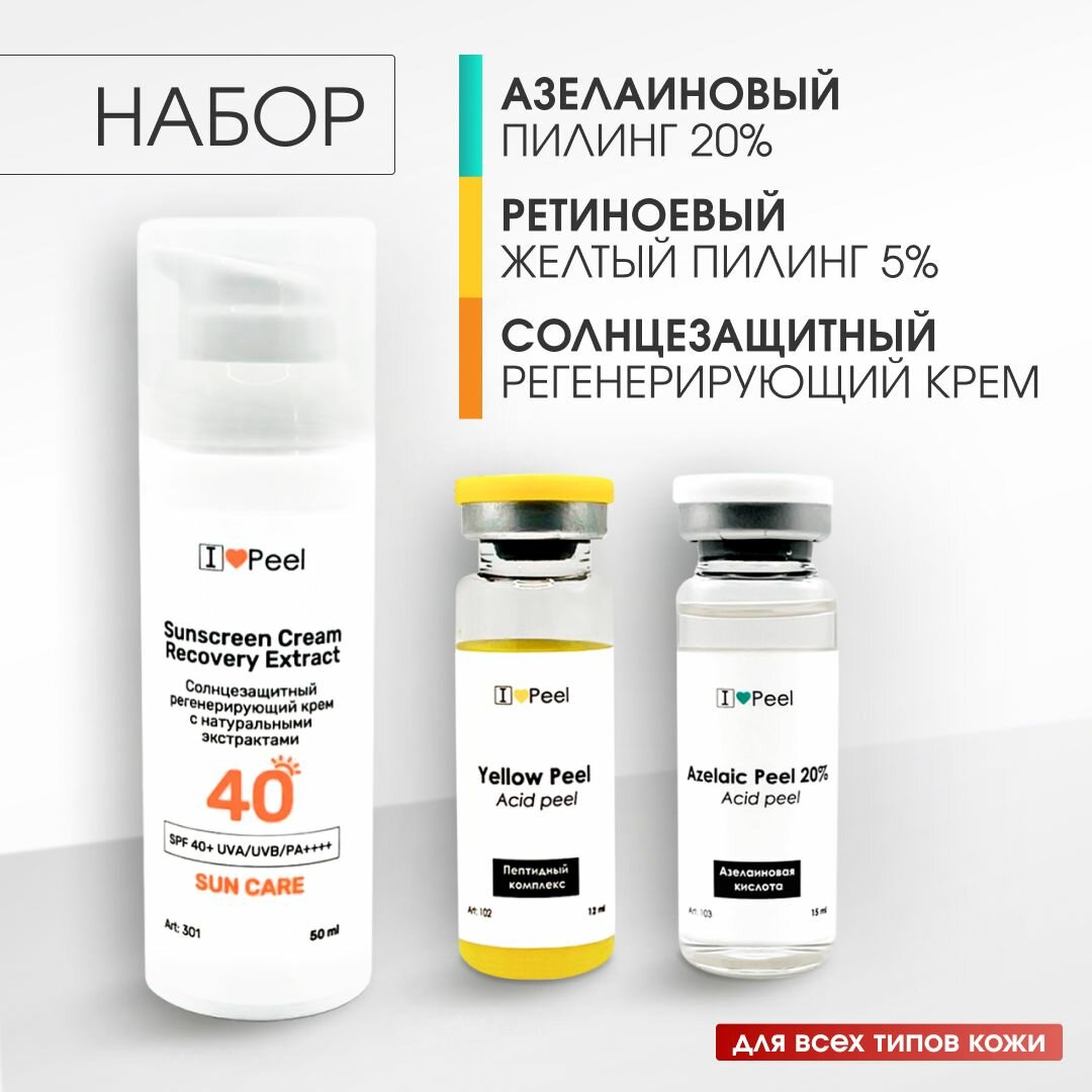 Купить Набор ILovePeel Желтый пилинг 12мл + Азелаиновый пилинг 15 мл + Крем SPF 40