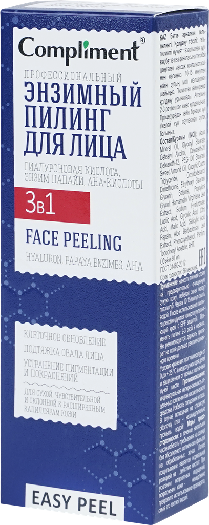 Compliment пилинг энзимный для лица Easy Peel Профессиональный 3 в 1 для сухой, чувствительной и склонной к расширенным капиллярам кожи, 80 мл