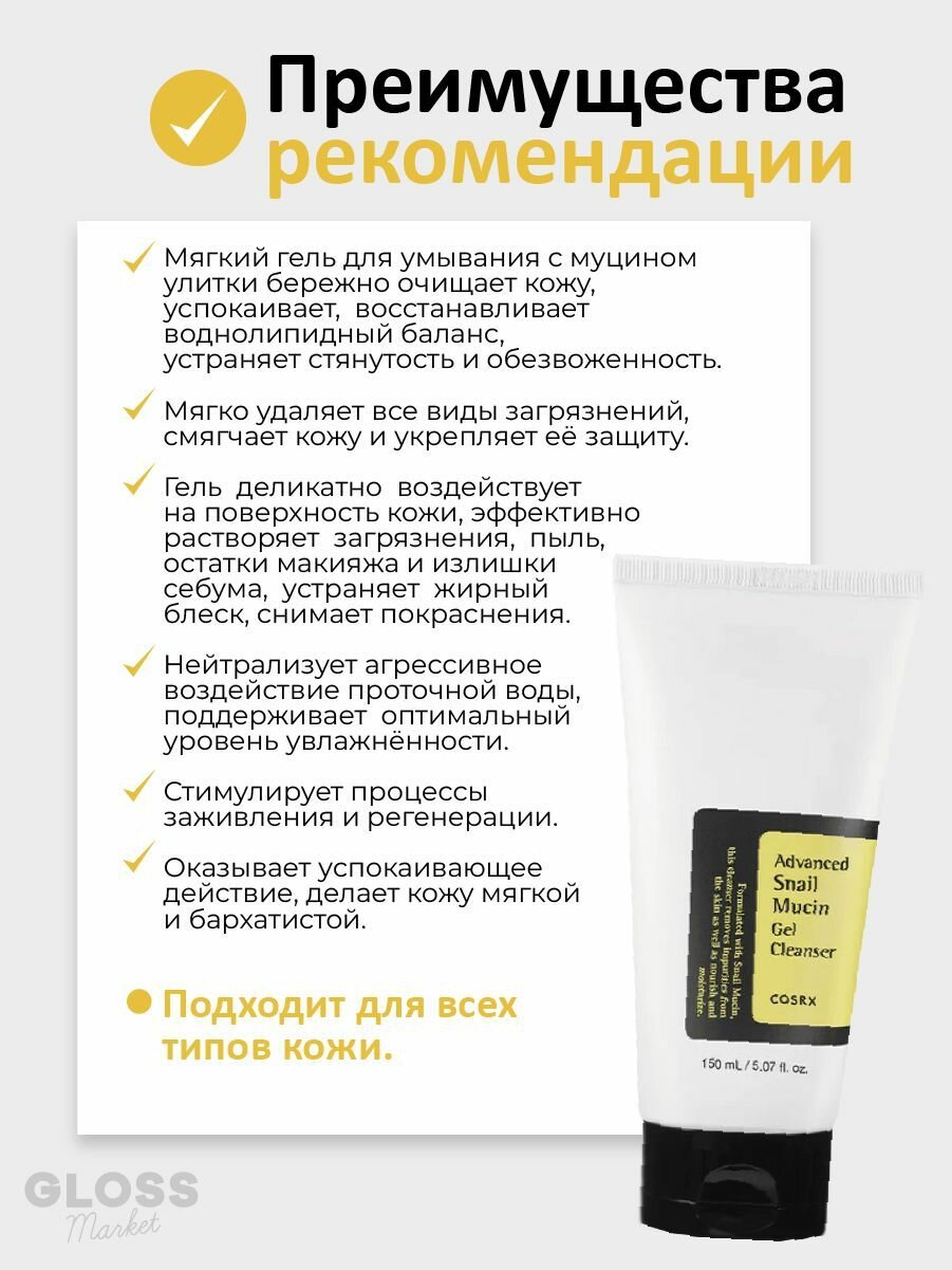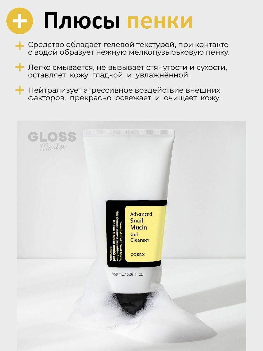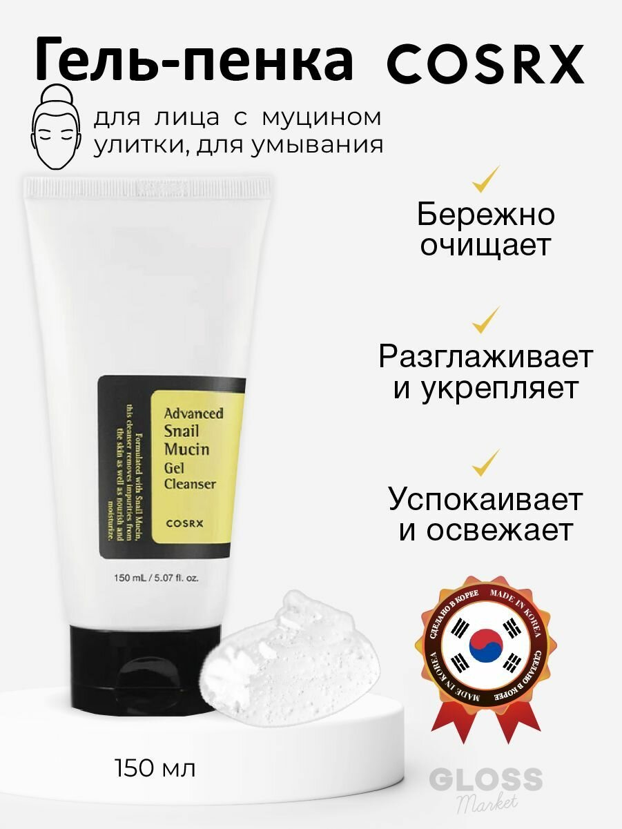Купить COSRX Мягкий гель для умывания с муцином улитки Advanced Snail Mucin Gel Cleanser 150 мл