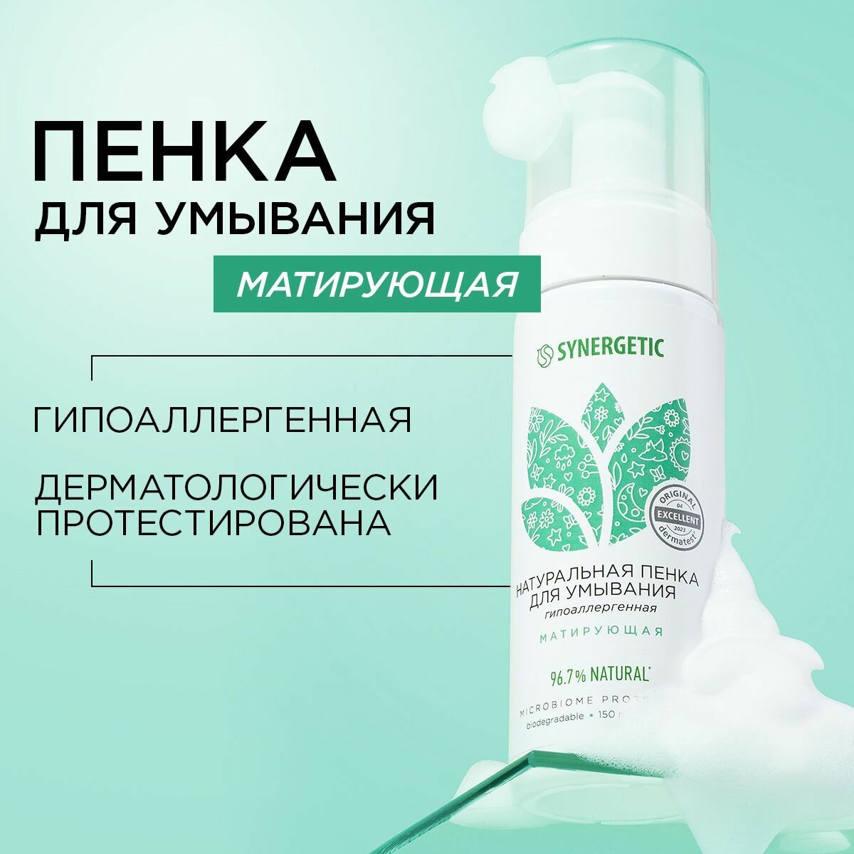 Натуральная пенка для умывания SYNERGETIC матирующая, 150 мл интересное: