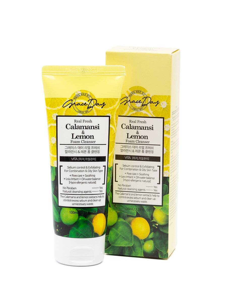 Grace Day Освежающая пенка для умывания, для снятия макияжа, для ухода за кожей лица, шеи и зоны декольте с экстрактами лимона и каламанси, корейская косметика. 100мл интересное: