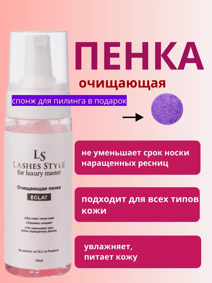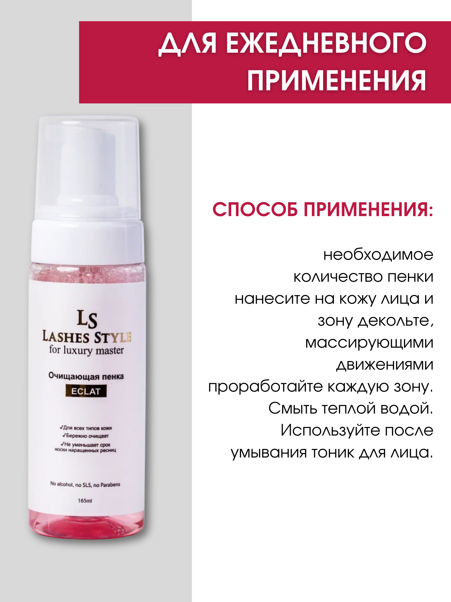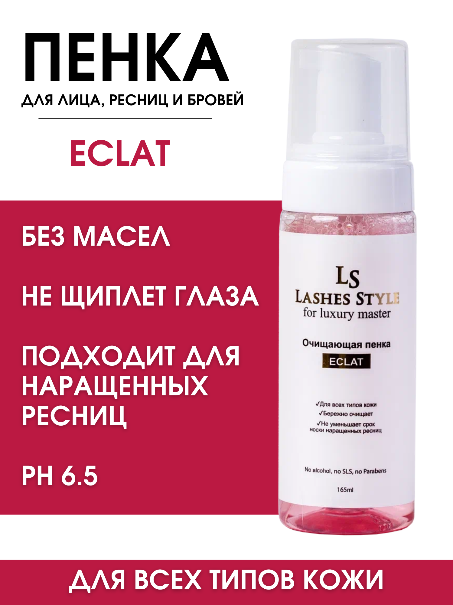 Очищающая пенка для умывания Lashes Style ECLAT, уход для наращенных ресниц 165 мл. интересное:
