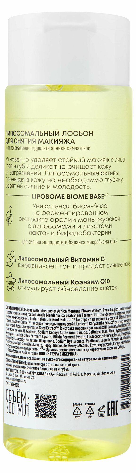 Липосомальный лосьон для снятия макияжа Natura Siberica LAB Biome LIPOSOME, 200 мл интересное: