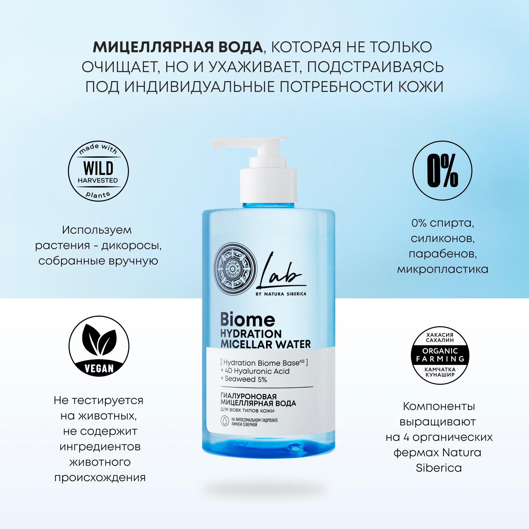 Купить Гиалуроновая мицеллярная вода для всех типов кожи Natura Siberica LAB Biome Hydration, 450 мл