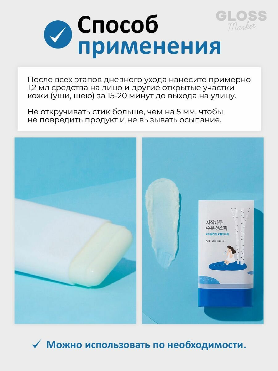 Стик cолнцезащитный с березовым соком | Round Lab Birch Juice Moisturizing Sun Stick SPF 50+PA++++