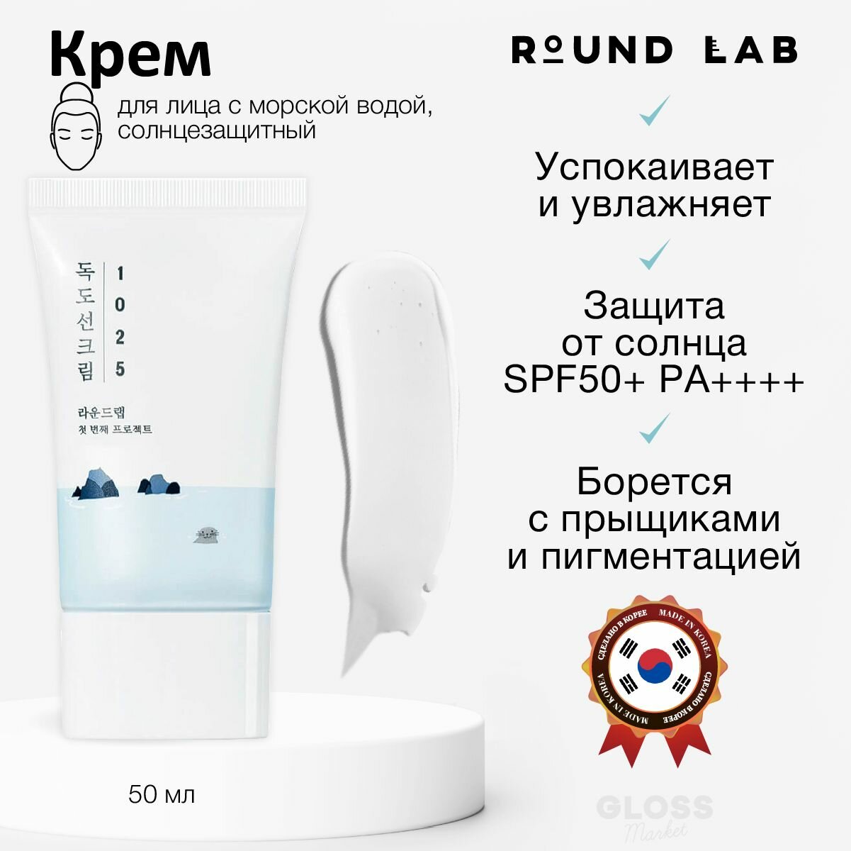 Round Lab Солнцезащитный крем для лица на химических фильтрах нового поколения, для проблемной кожи, с морской водой, SPF 50+ 1025 Dokdo Sunscreen, 50 мл