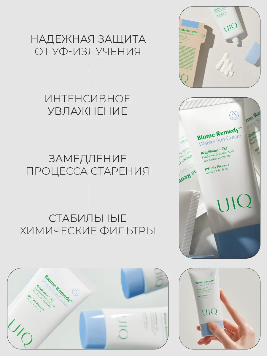 Легкий увлажняющий солнцезащитный крем с постбиотиками UIQ SPF50 Biome Remedy™ Watery Sun Cream 50 мл интересное: