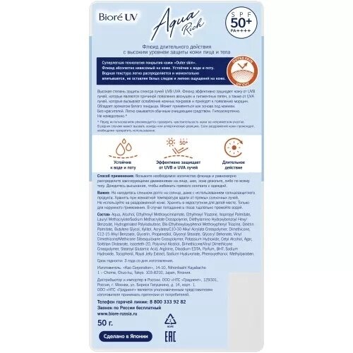 Biore Солнцезащитный флюидUV Aqua Rich SPF50, 50 г