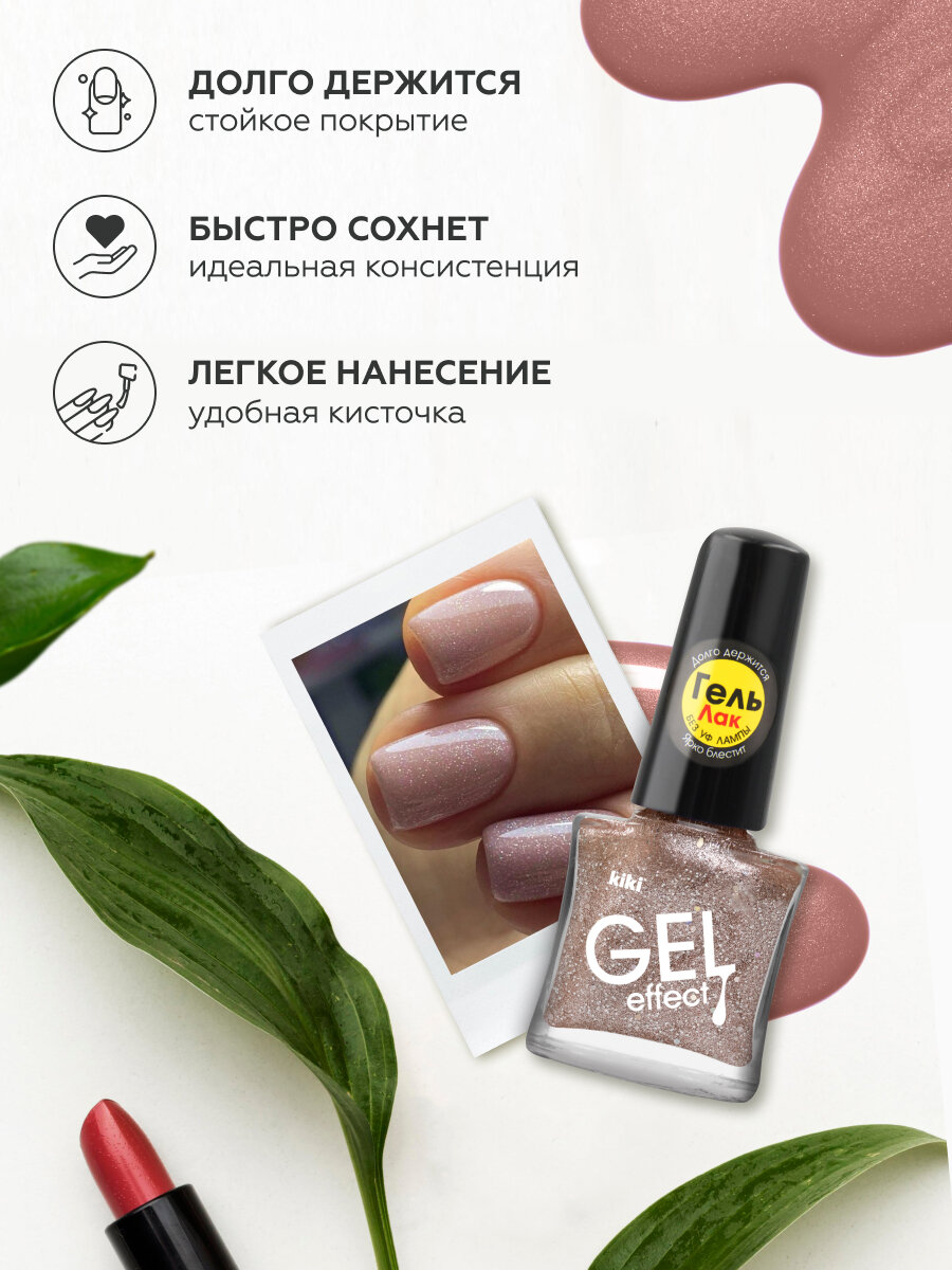 Лак для ногтей kiki Gel Effect тон 81 бледно-розовый, с гелевым эффектом без уф-лампы, цветной глянцевый маникюр и педикюр с блестками, шиммером, 6 мл