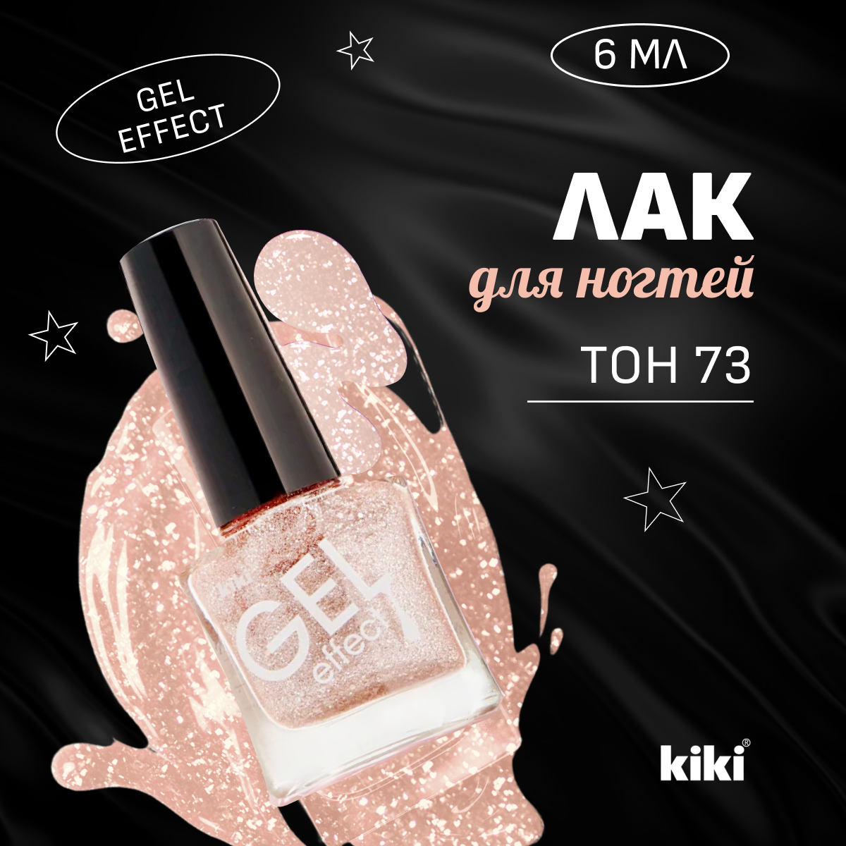 Лак для ногтей kiki Gel Effect тон 73 розовый с блестками, с гелевым эффектом без уф-лампы, цветной глянцевый маникюр и педикюр с шиммером, кики, 6 мл