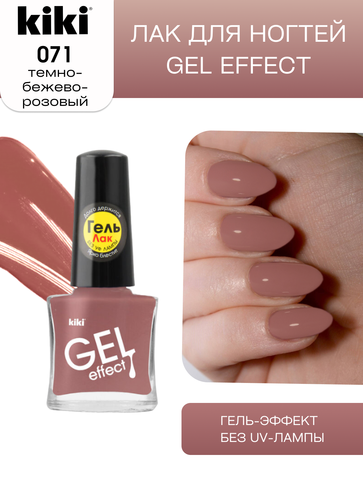 Купить Лак для ногтей с гелевым эффектом KIKI Gel Effect 071, темно-бежево-розовый глянцевый 6 мл