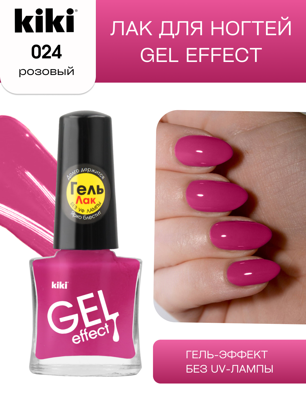 Лак для ногтей kiki Gel Effect тон 24 розовый с гелевым эффектом без уф-лампы, цветной глянцевый маникюр и педикюр, кики, 6 мл