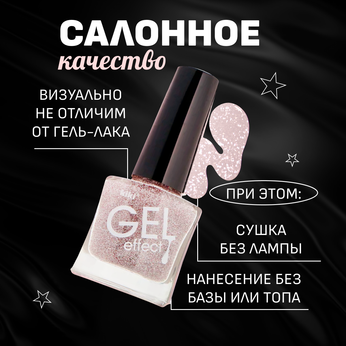 Лак для ногтей kiki Gel Effect тон 81 бледно-розовый, с гелевым эффектом без уф-лампы, цветной глянцевый маникюр и педикюр с блестками, шиммером, 6 мл