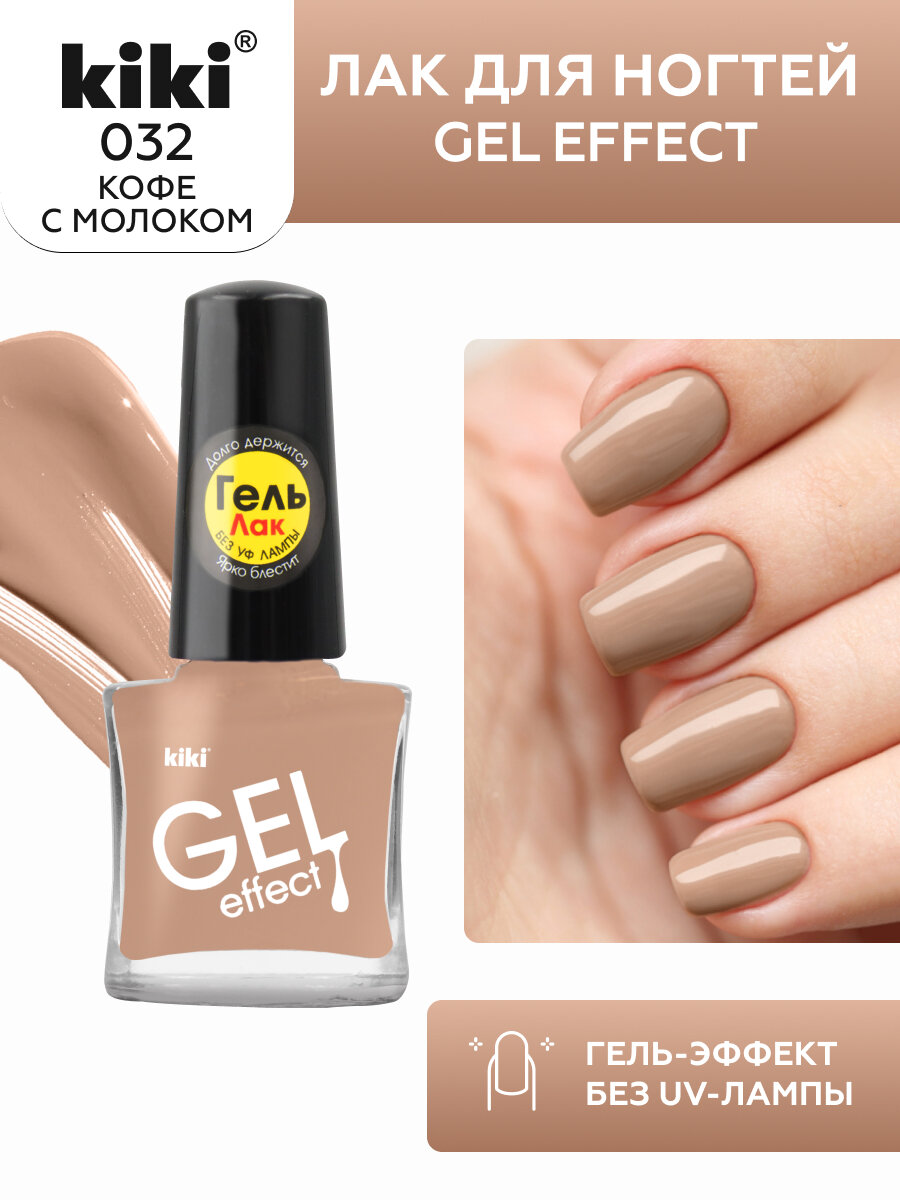 Купить Лак для ногтей с гелевым эффектом KIKI Gel Effect 032, кофе с молоком, глянцевый 6 мл