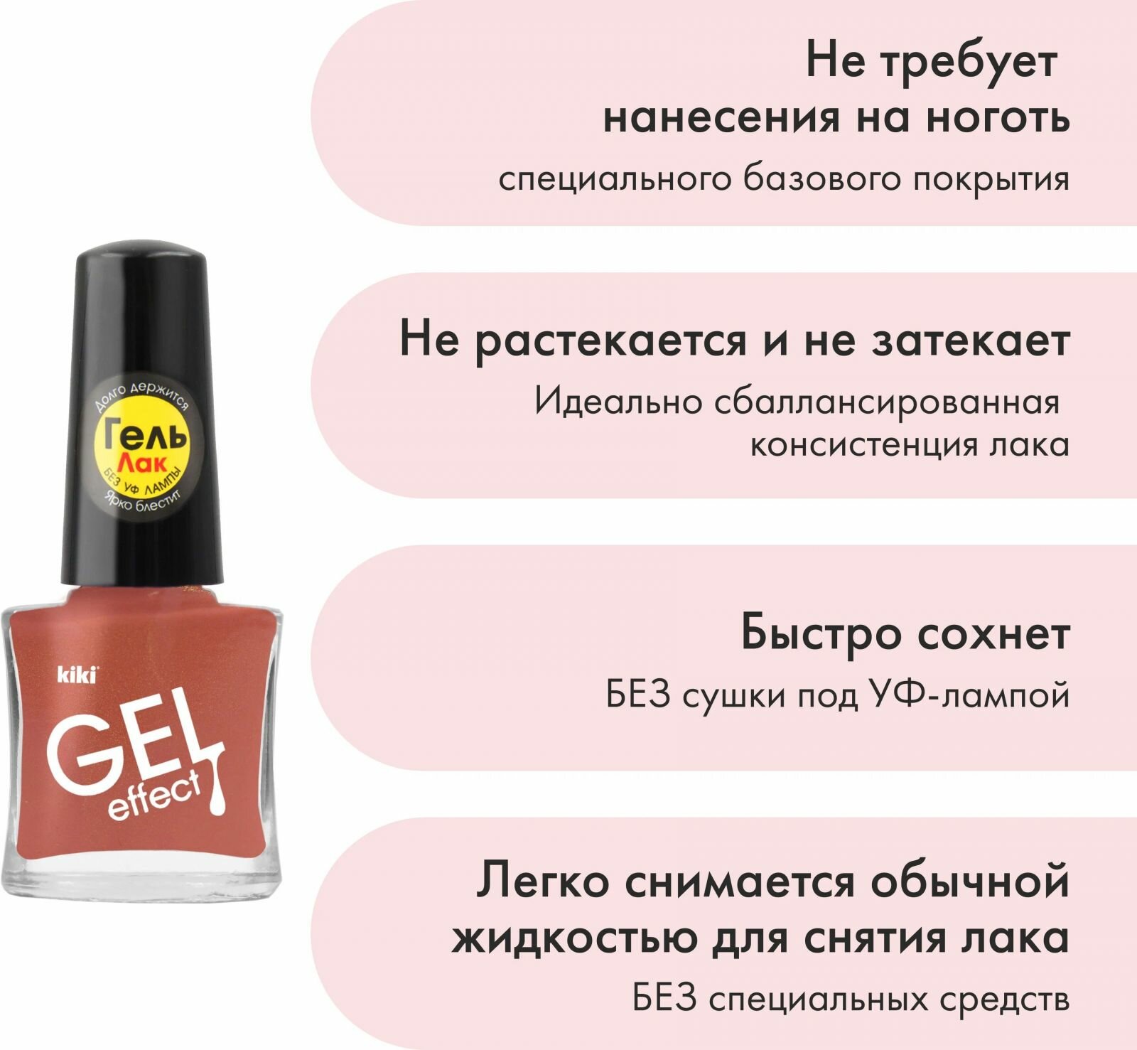Лак для ногтей kiki Gel Effect тон 80 бледно-розовый, с гелевым эффектом без уф-лампы, цветной глянцевый маникюр и педикюр, 6 мл