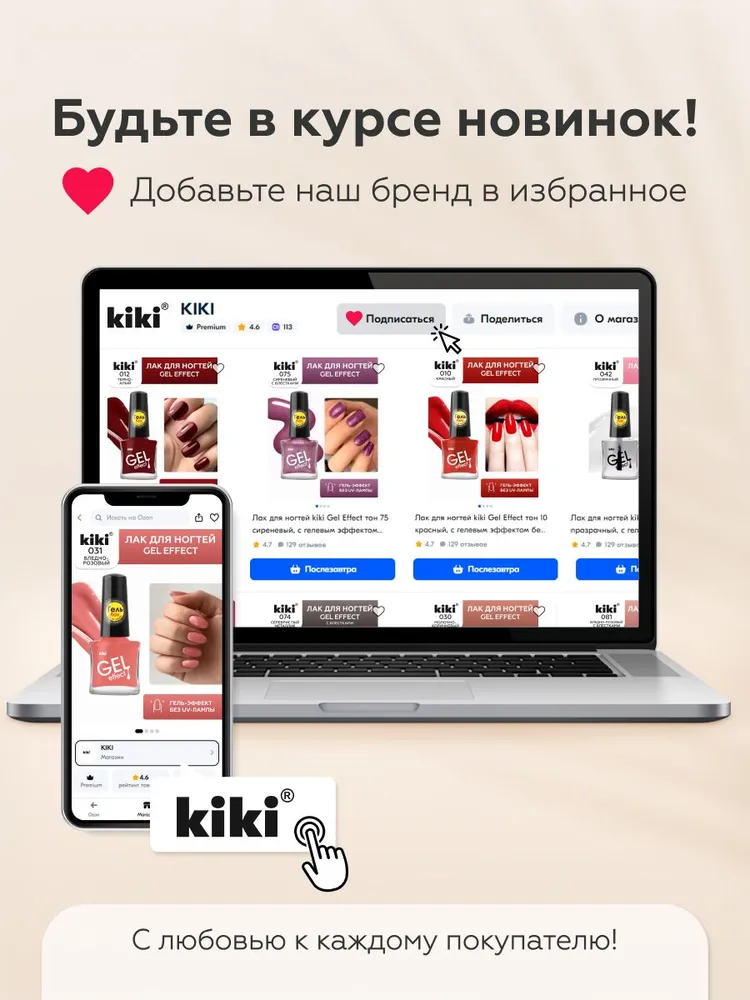 Лак для ногтей kiki Gel Effect тон 77 бежевый, с гелевым эффектом без уф-лампы, цветной глянцевый маникюр и педикюр, 6 мл
