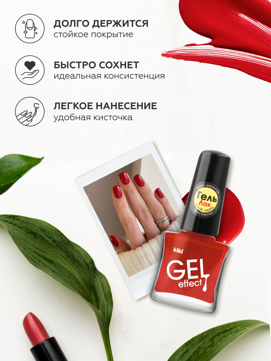 Лак для ногтей kiki Gel Effect тон 79 алый, с гелевым эффектом без уф-лампы, цветной глянцевый маникюр и педикюр, 6 мл