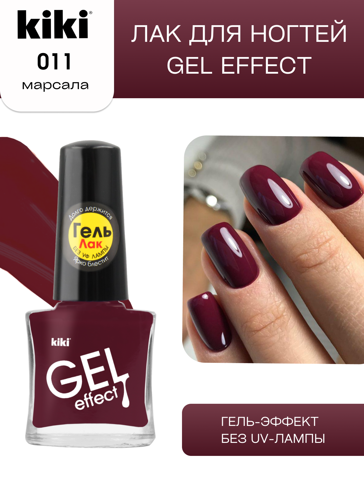 Лак для ногтей kiki Gel Effect тон 11 марсала с гелевым эффектом без уф-лампы, цветной глянцевый маникюр и педикюр, кики, 6 мл