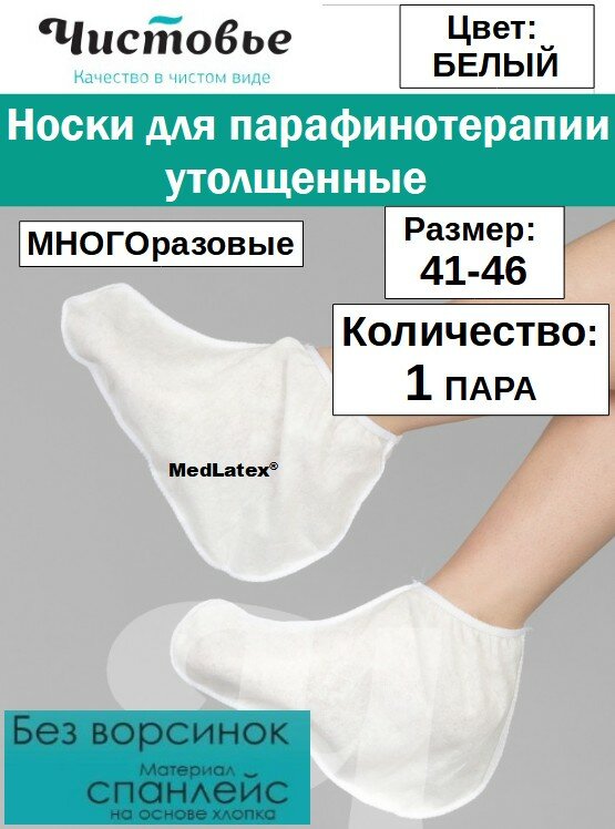 Ниже Вы можете прочитать отзывы на Чистовье, Носки для парафин. утолщённые Спанлейс Белый 1 пара, ознакомится с подробными характеристиками, посмотреть интересные обзоры и фотографии на Чистовье, Носки для парафин. утолщённые Спанлейс Белый 1 пара.