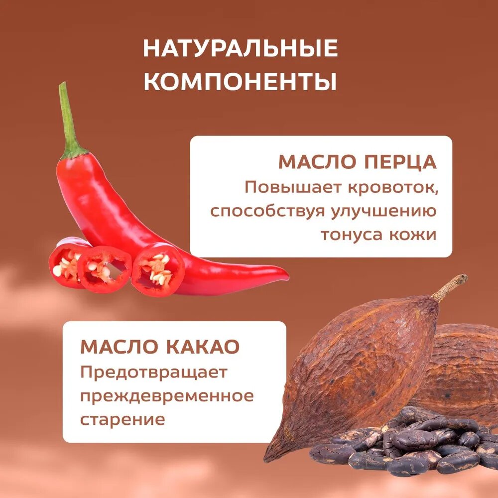 | Масла и экстракты | какао масло / масло апельсина / экстракт водорослей / экстракт имбиря / экстракт красного перца |