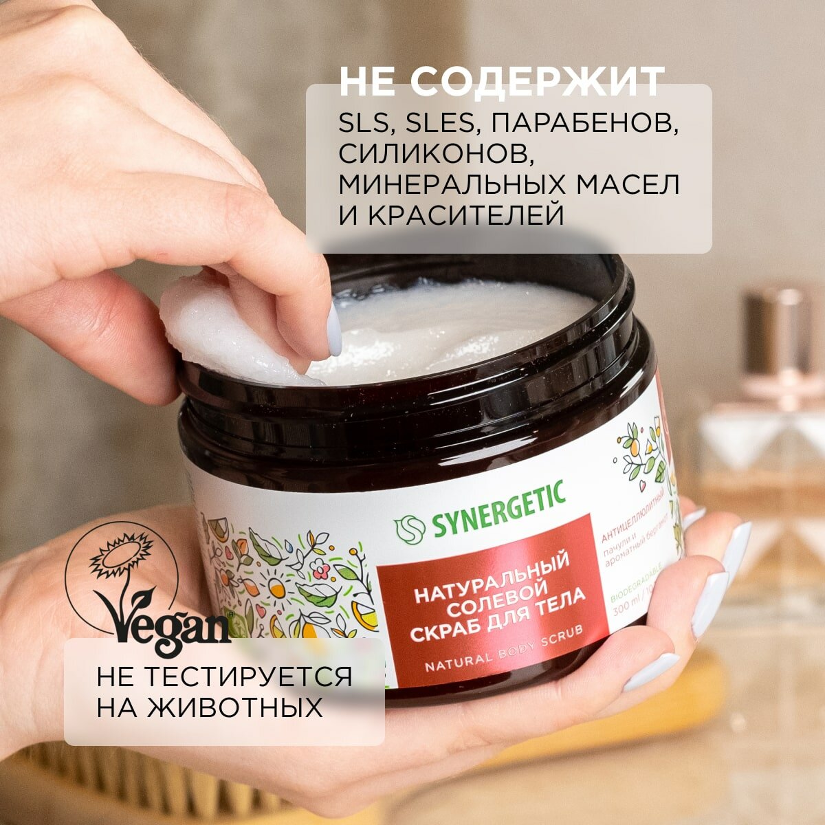 Скраб для тела SYNERGETIC антицеллюлитный "Пачули и ароматный бергамот", 300 мл интересное: