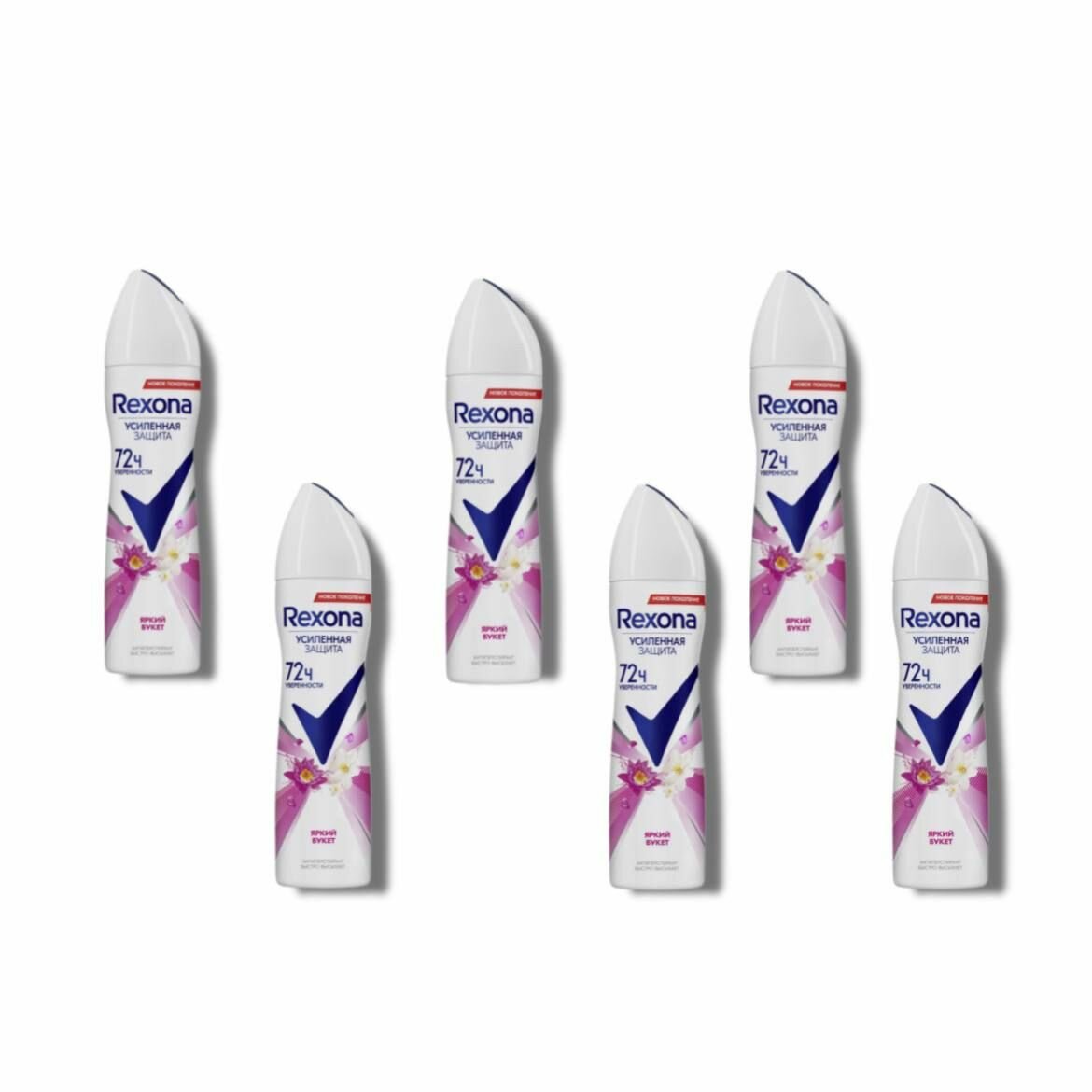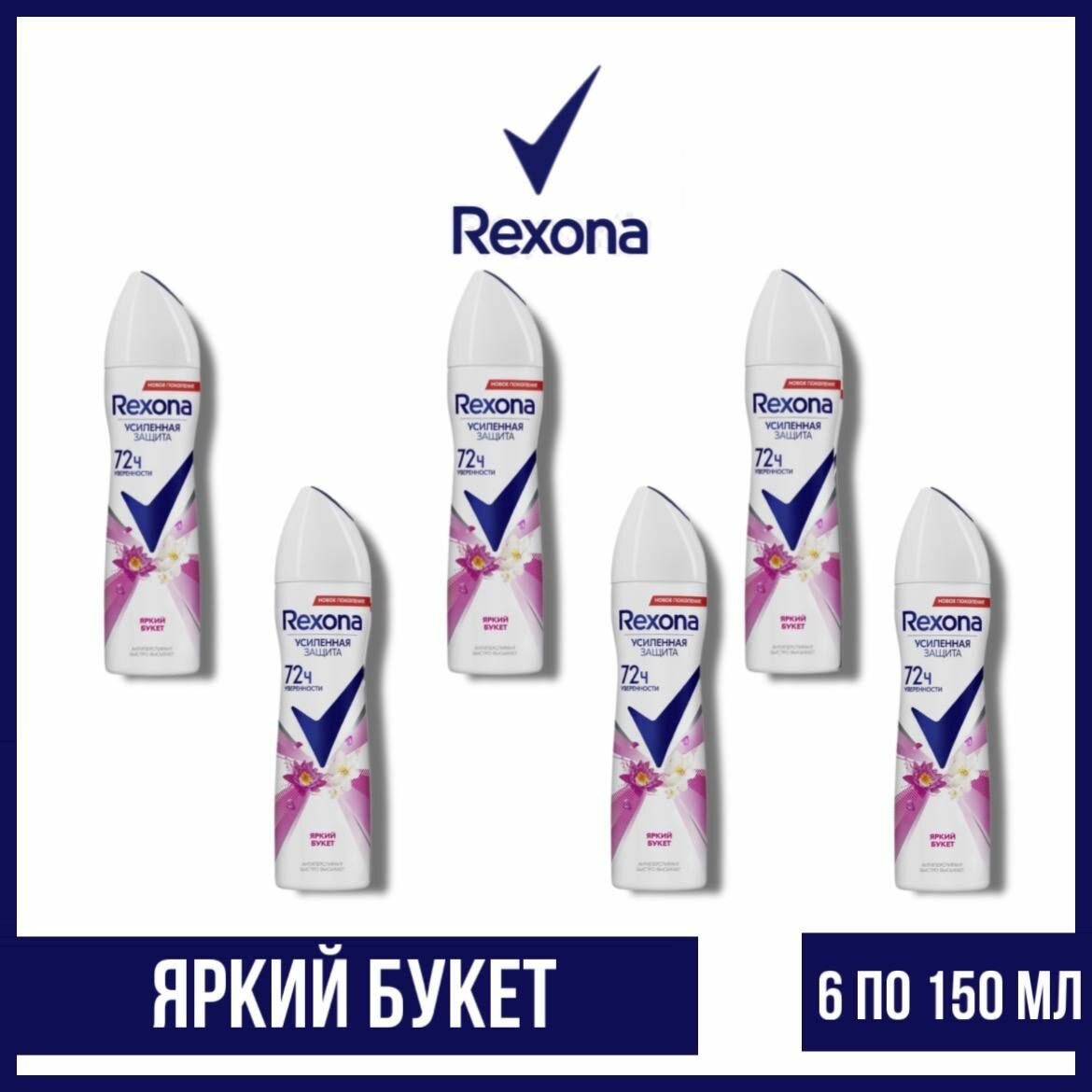 Rexona Дезодорант-антиперспирант аэрозоль Яркий букет усиленная защита 72 часа уверенности 150 мл - 6 шт