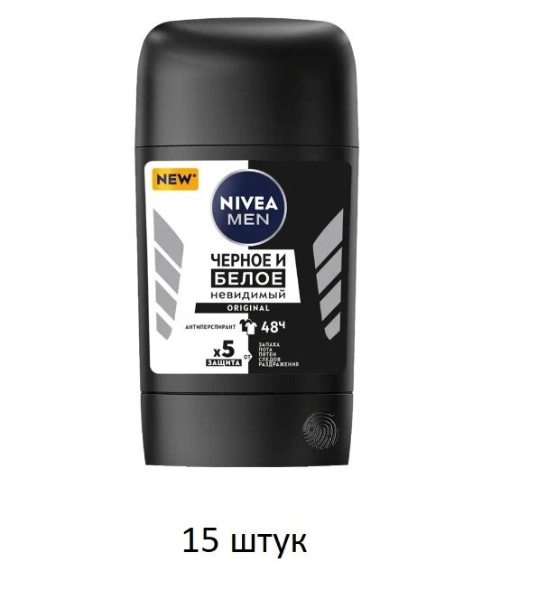 Антиперспирант-стик Nivea Men Черное и белое Невидимый Original, 50 мл, 15 шт
