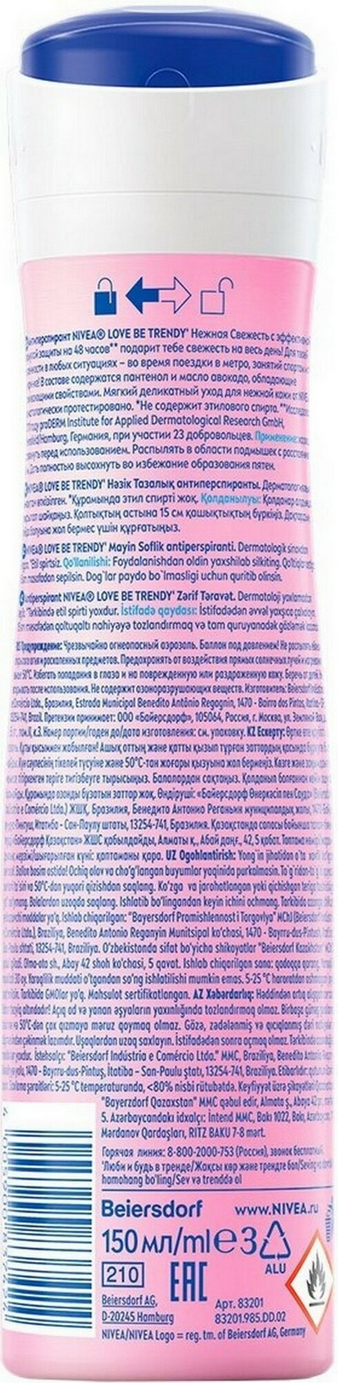 Nivea Дезодорант-антиперспирант спрей женский Love Be Trendy Нежная свежесть, 150 мл - 1 шт интересное: