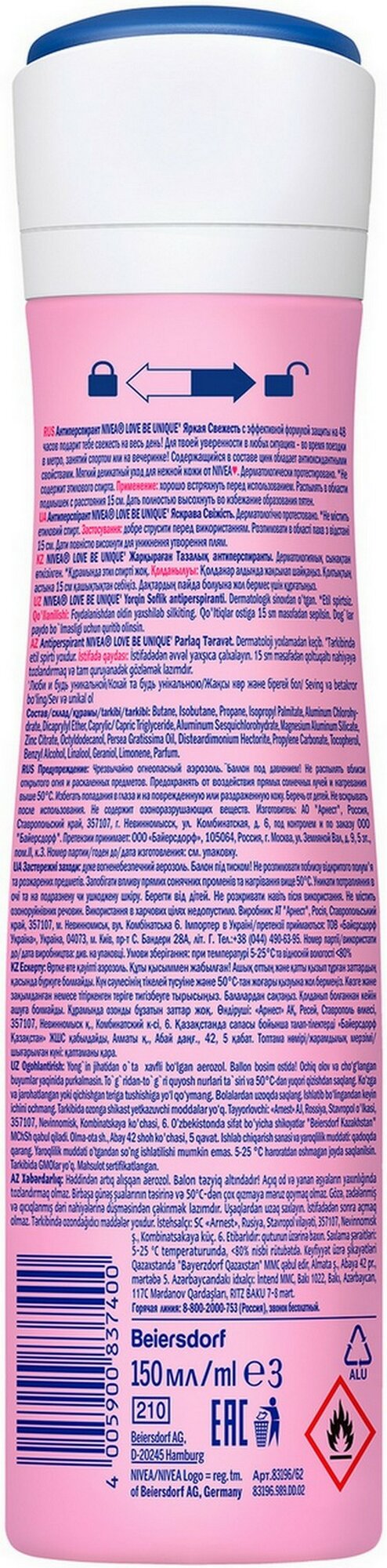 NIVEA Антиперспирант Love Be Trendy Нежная свежесть, спрей, аэрозоль, 150 мл, 134 г, 1 шт.