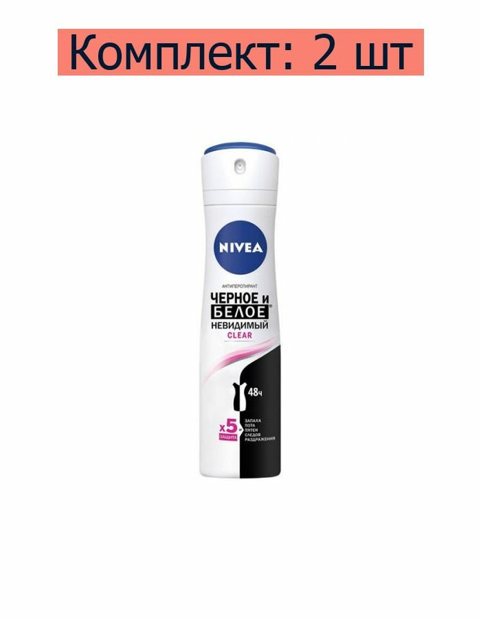 Купить Антиперспирант спрей Nivea Невидимый для черного и белого Clear, 150 мл, 2 шт