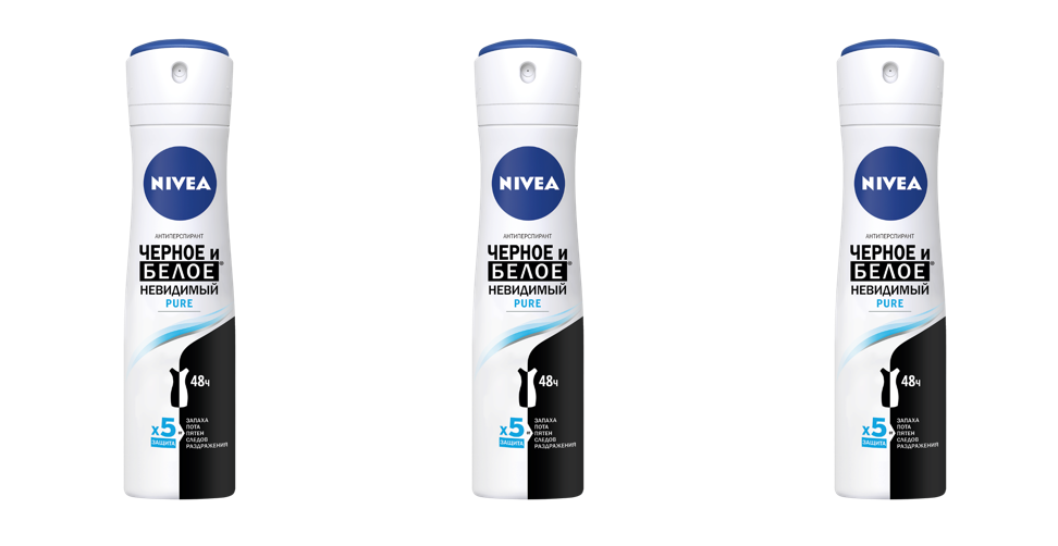 Nivea Дезодорант Pure Невидимая защита для черного и белого, 150 мл, 3 шт