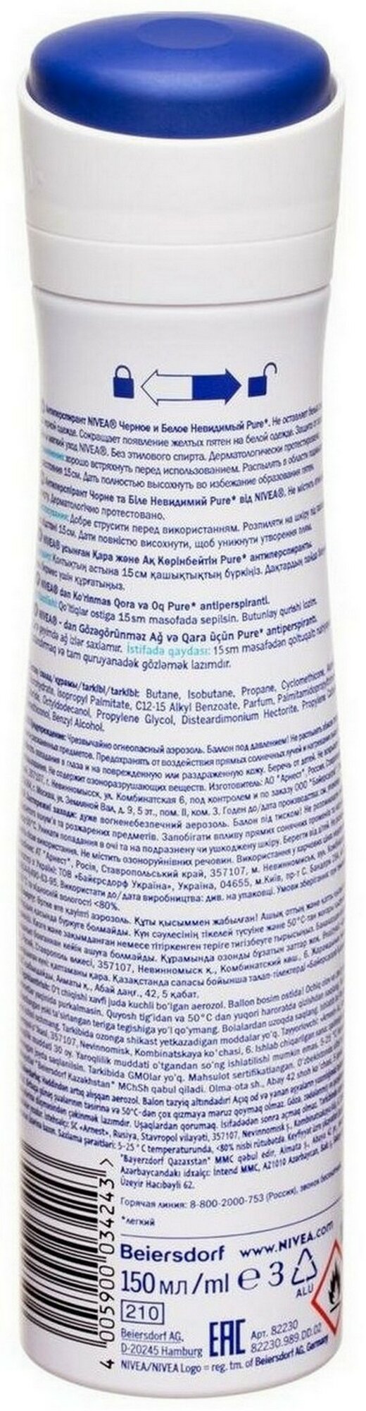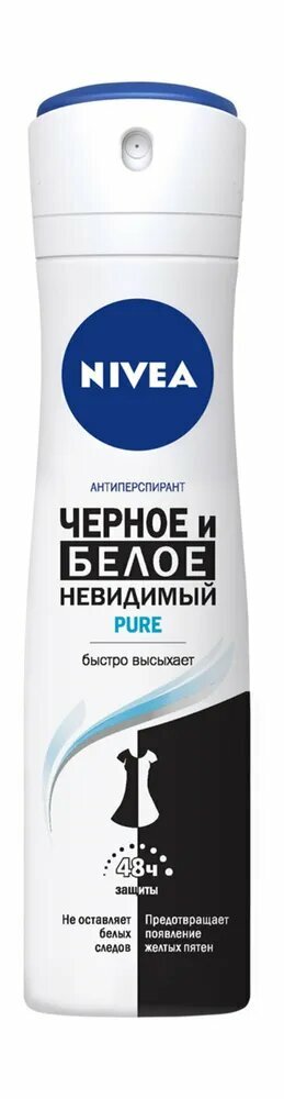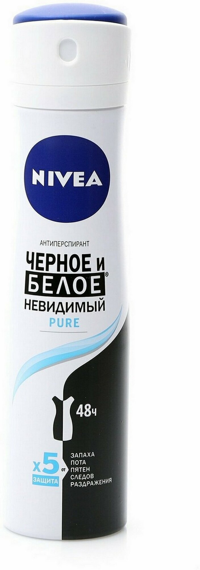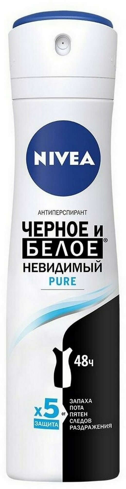 Nivea Дезодорант-антиперспирант спрей женский Черное и Белое Невидимый Pure, 150 мл - 1 шт