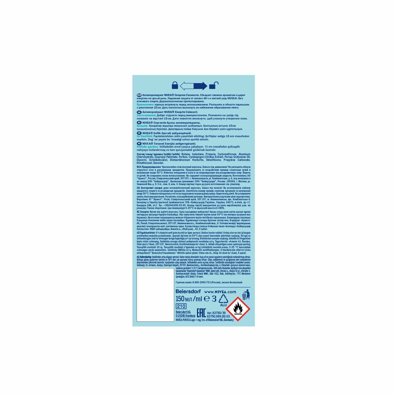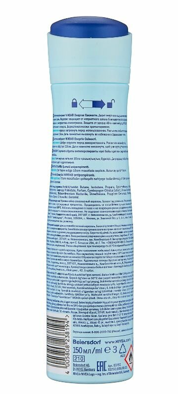 СохранитьДезодорант-спрей Nivea "Энергия свежести", Быстро высыхает, 150 мл интересное: