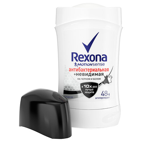 Купить Дезодорант-стик женский, Rexona, антибактериальный, невидимый на черном и белом, 40 мл
