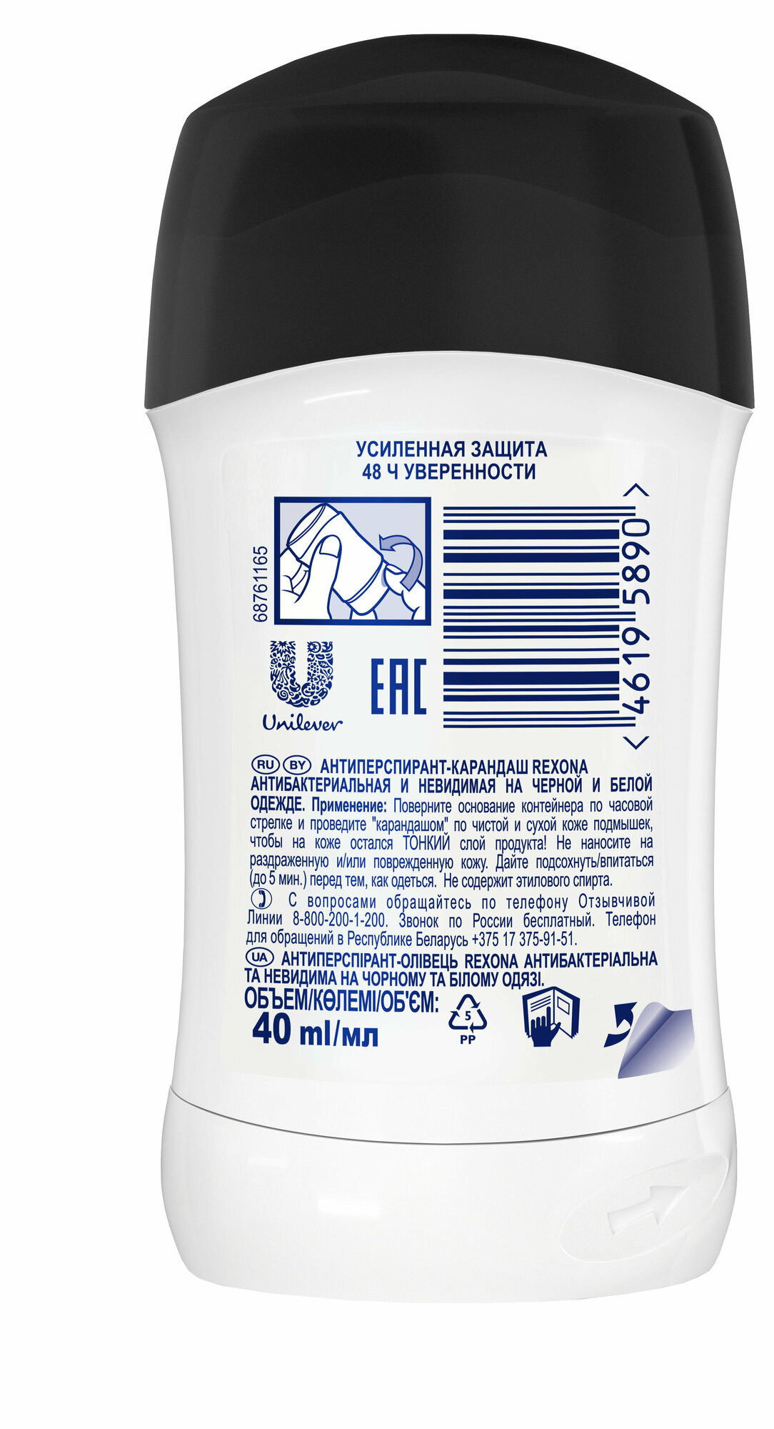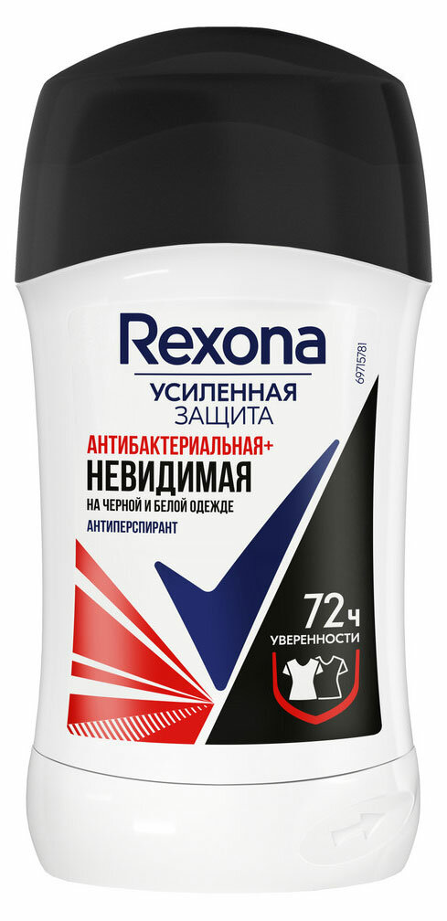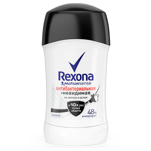 Rexona Дезодорант-антиперспирант стик Антибактериальная и Невидимая на черной и белой одежде 40 мл - 1 шт