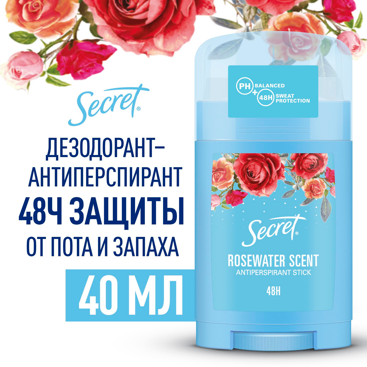 Твердый антиперспирант Secret Rosewater scent 40 мл (81770193) интересное: