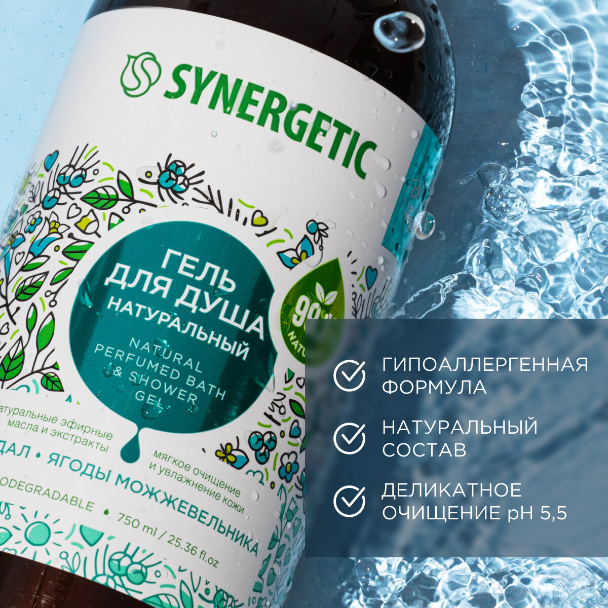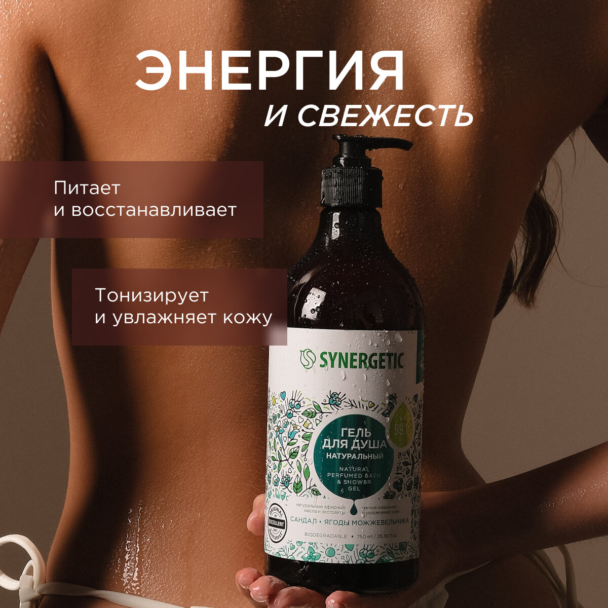 Гель для душа SYNERGETIC, биоразлагаемый, со вкусом сандала и ягод можжевельника, 380 мл (комплект из 6 шт)