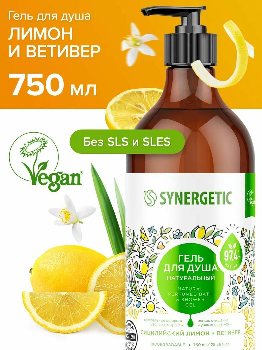 Купить Гель для душа SYNERGETIC "Сицилийский лимон и ветивер", 750 мл