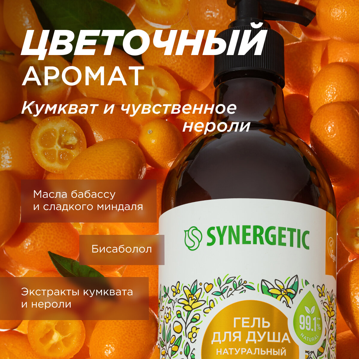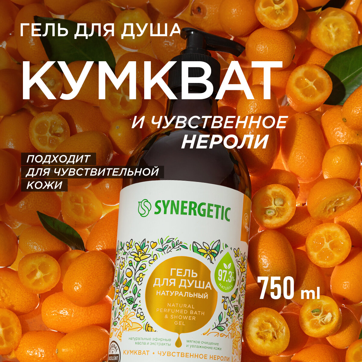 Гель для душа SYNERGETIC Кумкват и чувственное нероли, 750 мл, 3 шт