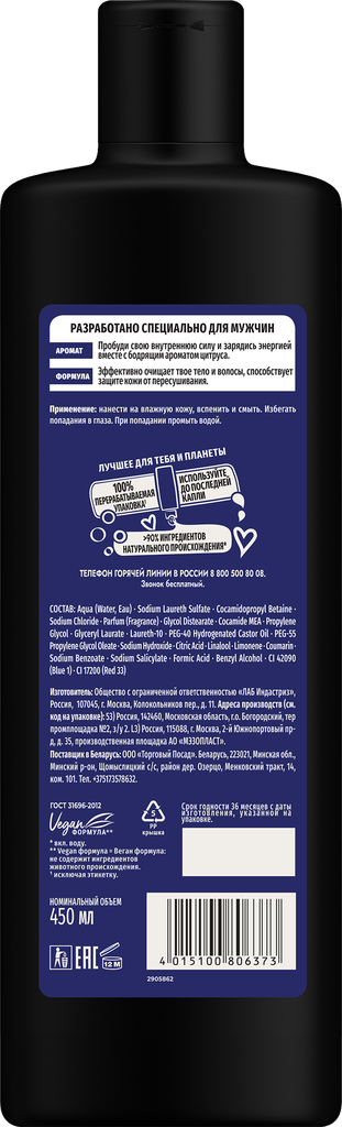 | Способ применения | нанести на влажную кожу, вспенить и смыть |