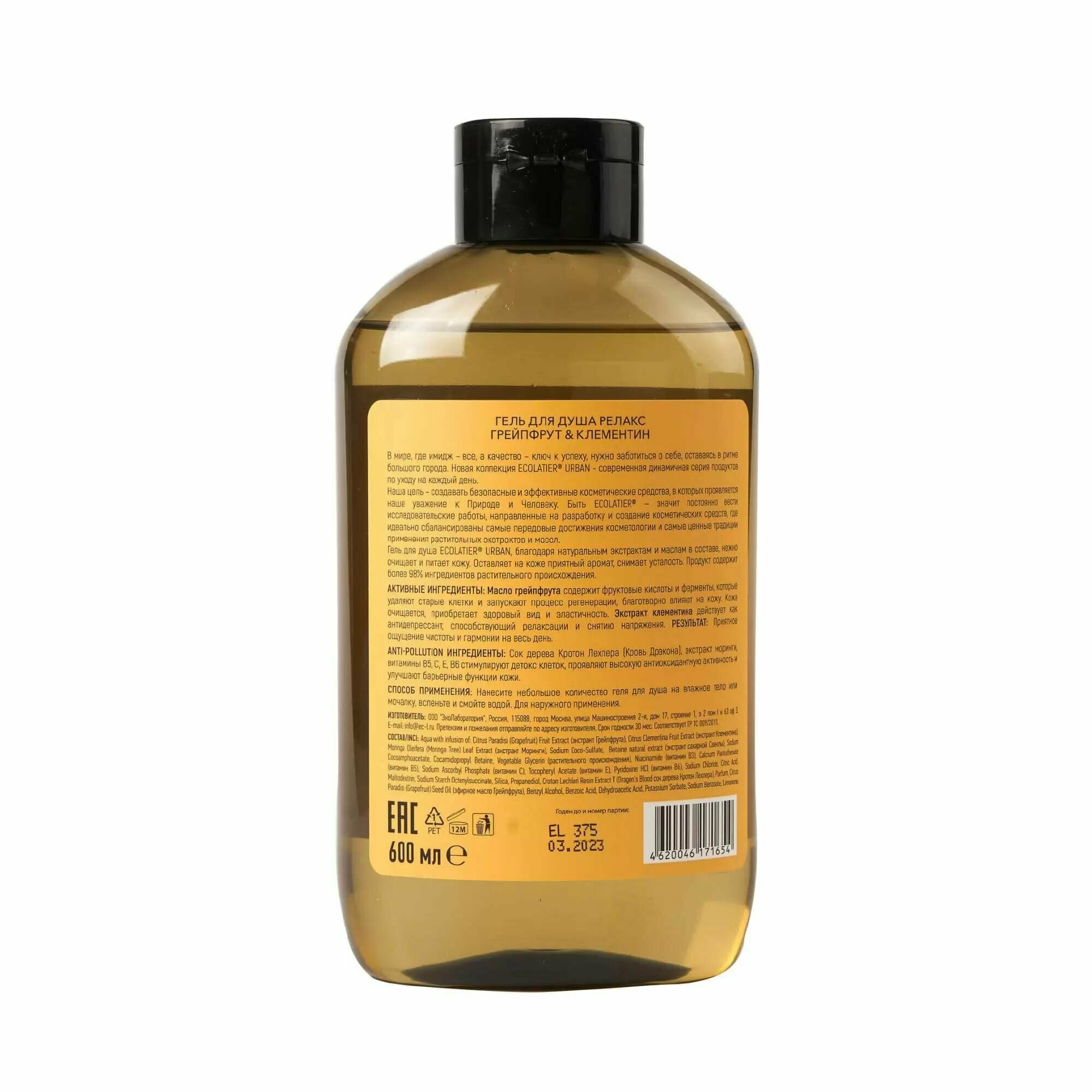 ECOLATIER ECL Гель для душа Релакс грейпфрут & клементин, 600 мл