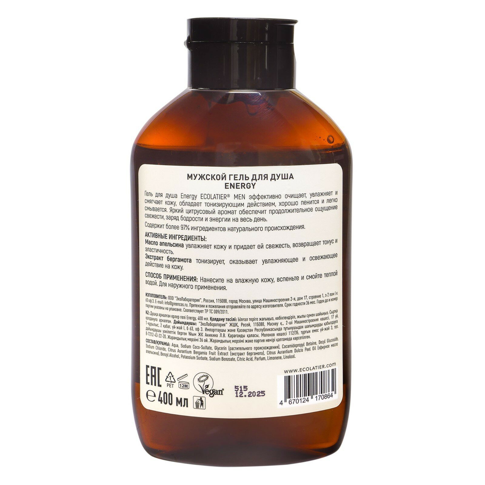 ECOLATIER Мужской гель для душа Energy, 400 мл
