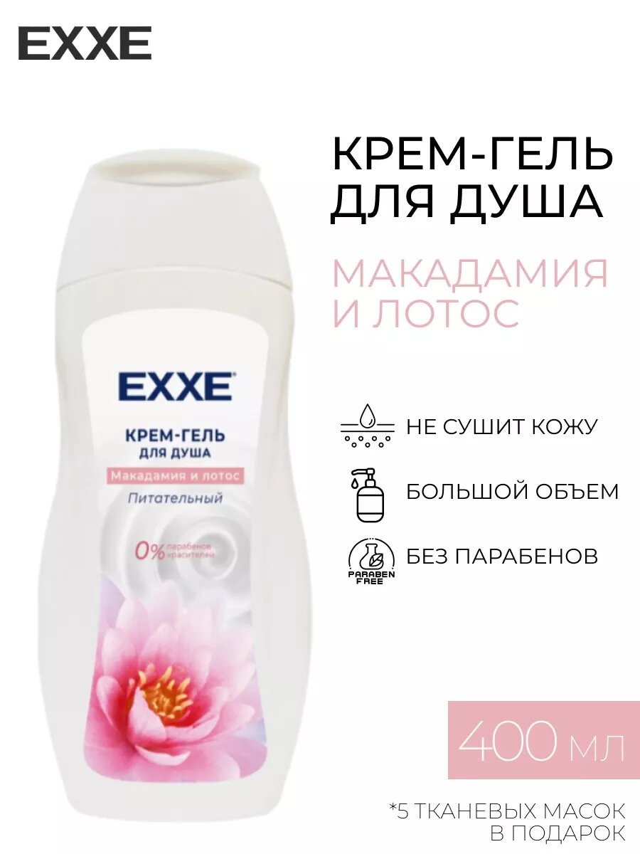 EXXE Питательный крем-гель для душа "Макадамия и лотос", 400 мл