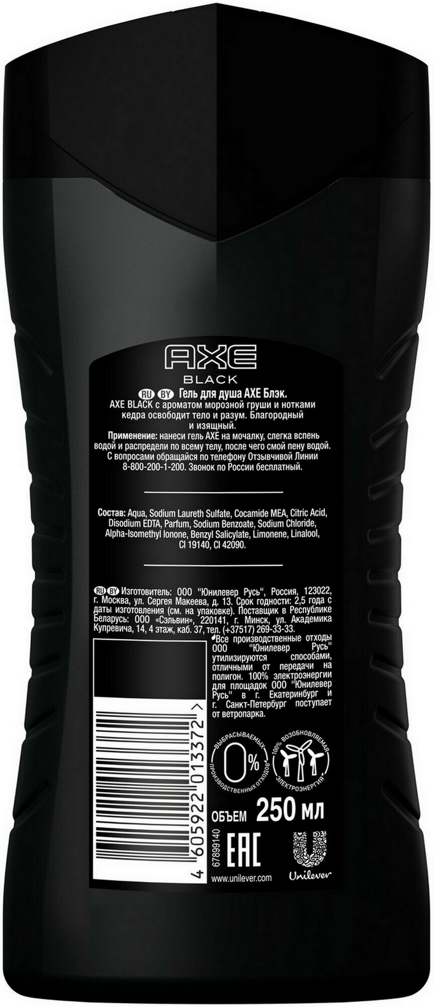 Axe мужской гель для душа Black, Морозная груша и Кедр, 12 часов свежести 250 мл - 1 шт