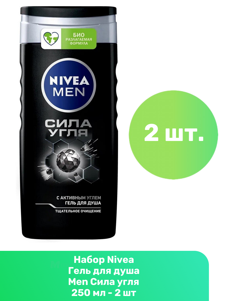 Nivea Гель для душа Men Сила угля, 250 мл, 2 шт