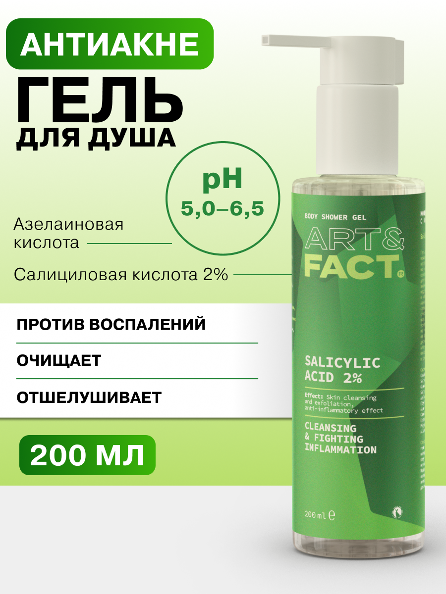 ART&FACT. / Антиакне моющий гель для тела с кислотами 2%, очищение и отшелушивание, 200 мл