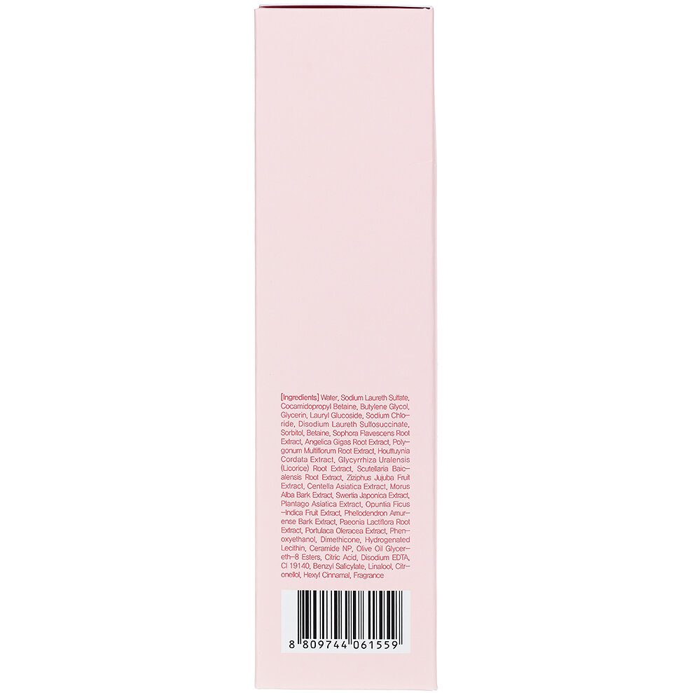 | Состав | Water, Sodium Laureth Sulfate, Cocamidopropyl Betaine, Butylene Glycol, Glycerin, Lauryl Glucoside, Sodium Chloride, Disodium Laureth Sulfosuccinate, Sorbitol, Betaine, Sophora Flavescens Root Extract, Angelica Gigas Root Extract, Polygonum Multiflorum Root Extract, Houttuynia Cordata Extract, lycyrrhiza Uralensis (Licorice) Root Extract, Scutellaria Baicalensis Root Extract, Ziziphus Jujuba Fruit Extract, Centella Asiatica Extract, Morus Alba Bark Extract, Swertia Japonica Extract, Plantago Asiatica Extract, Opuntia Ficus-Indica Fruit Extract, Phellodendron Amurense Bark Extract, Paeonia Lactiflora Root Extract, Portulaca Oleracea Extract, Phenoxyethanol, Dimethicone, Hydrogenated Lecithin, Ceramide NP, Olive Oil Glycereth-8 Esters, Citric Acid, Disodium EDTA, CI 19140, Benzyl Salicylate, Linalool, Citronellol, Hexyl Cinnamal, Fragrance. |