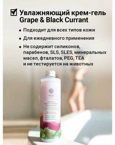 Купить Увлажняющий крем-гель для душа GRAPE & BLACK CURRANT с розовой гималайской солью 250мл