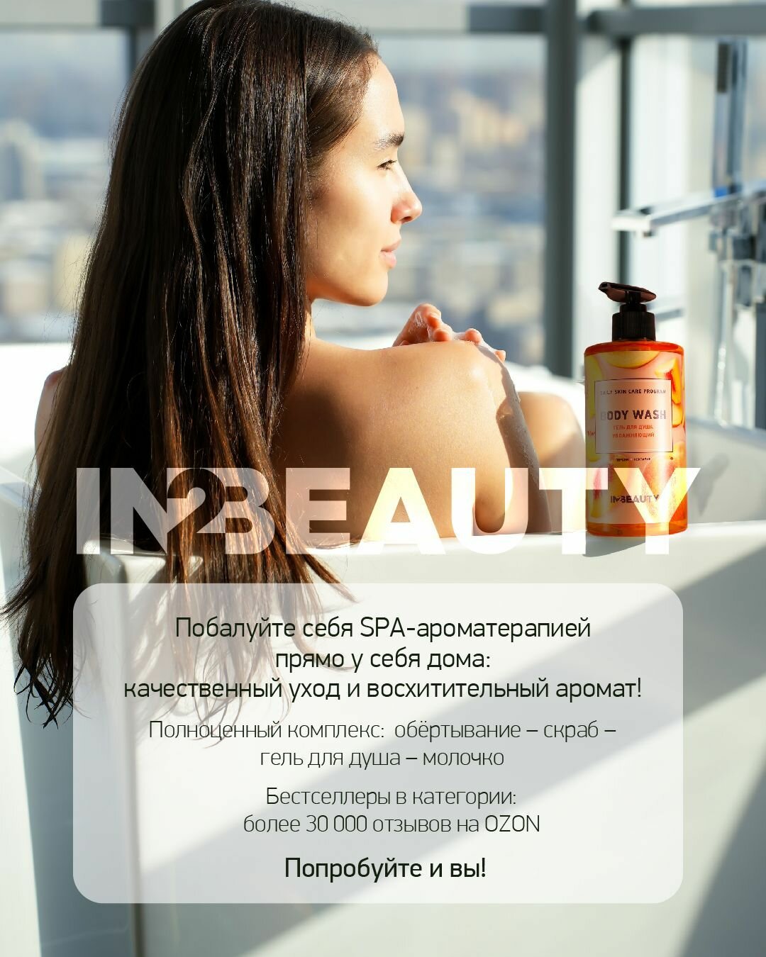 IN2BEAUTY/ гель для душа тонизирующий с маслами Грейпфрут и зелёным чаем + молочко для тела с маслами грейпфрута и витамином C, с дозатором