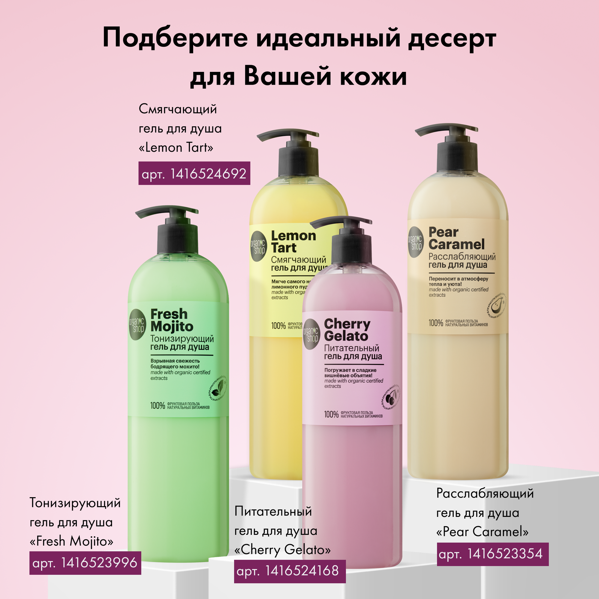 Ниже Вы можете прочитать отзывы на Питательный гель "Cherry Gelato" от Organic Shop, 1000мл, ознакомится с подробными характеристиками, посмотреть интересные обзоры и фотографии на Питательный гель "Cherry Gelato" от Organic Shop, 1000мл.